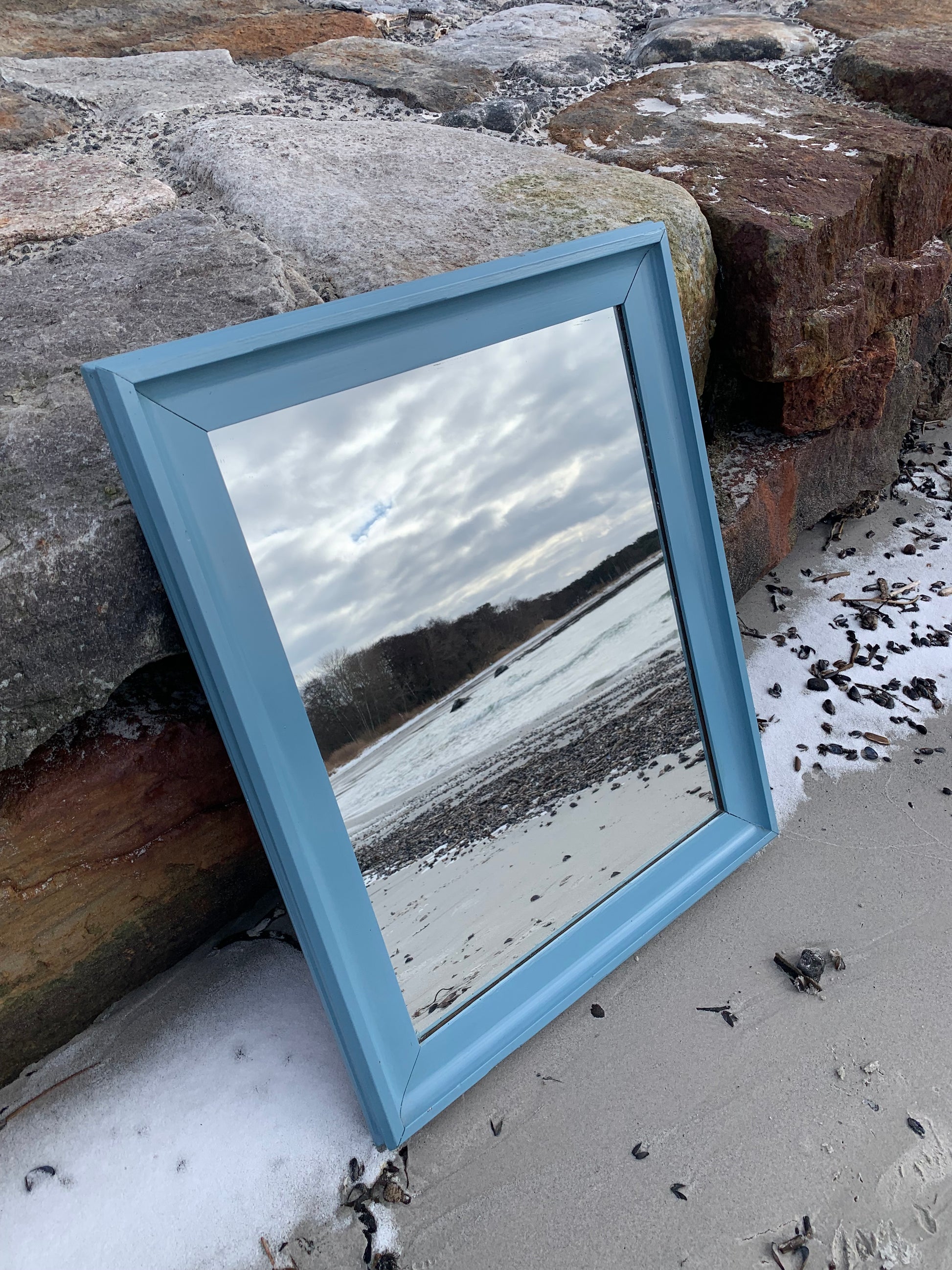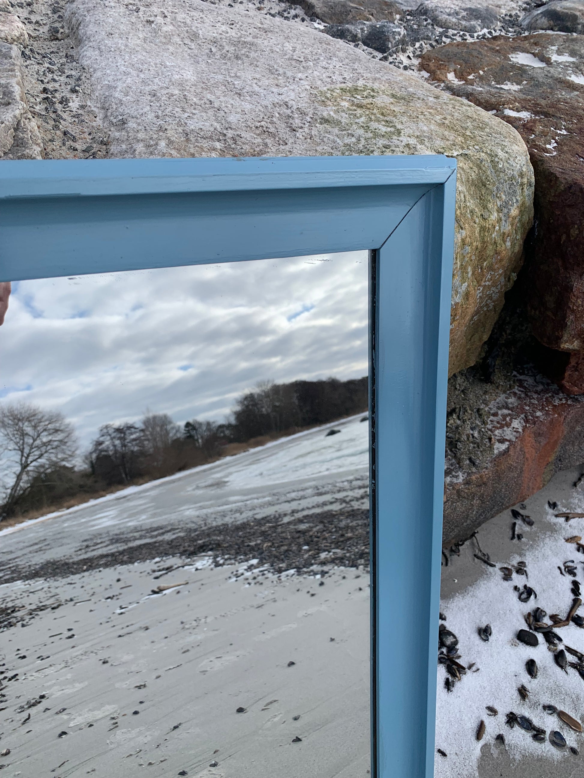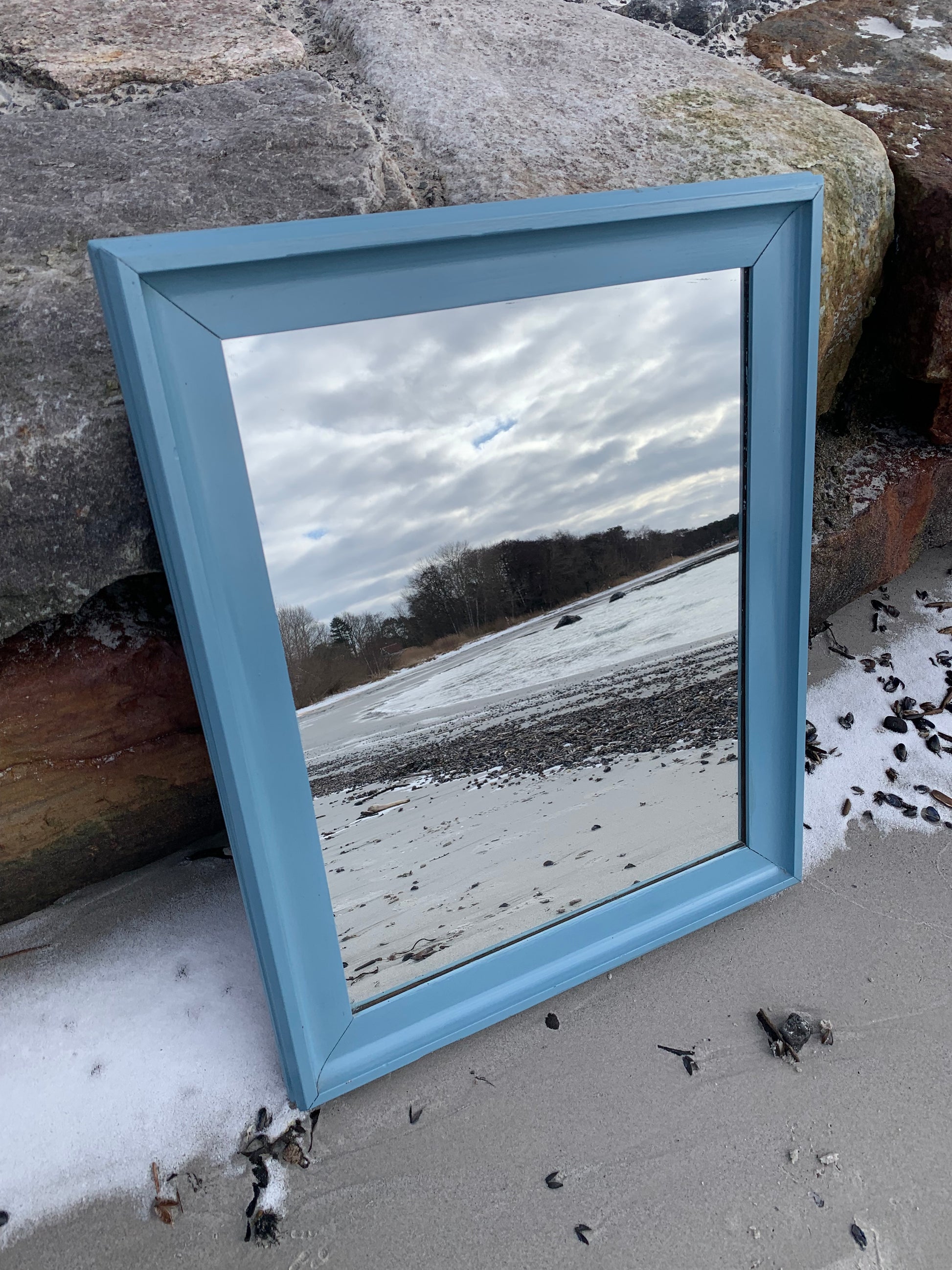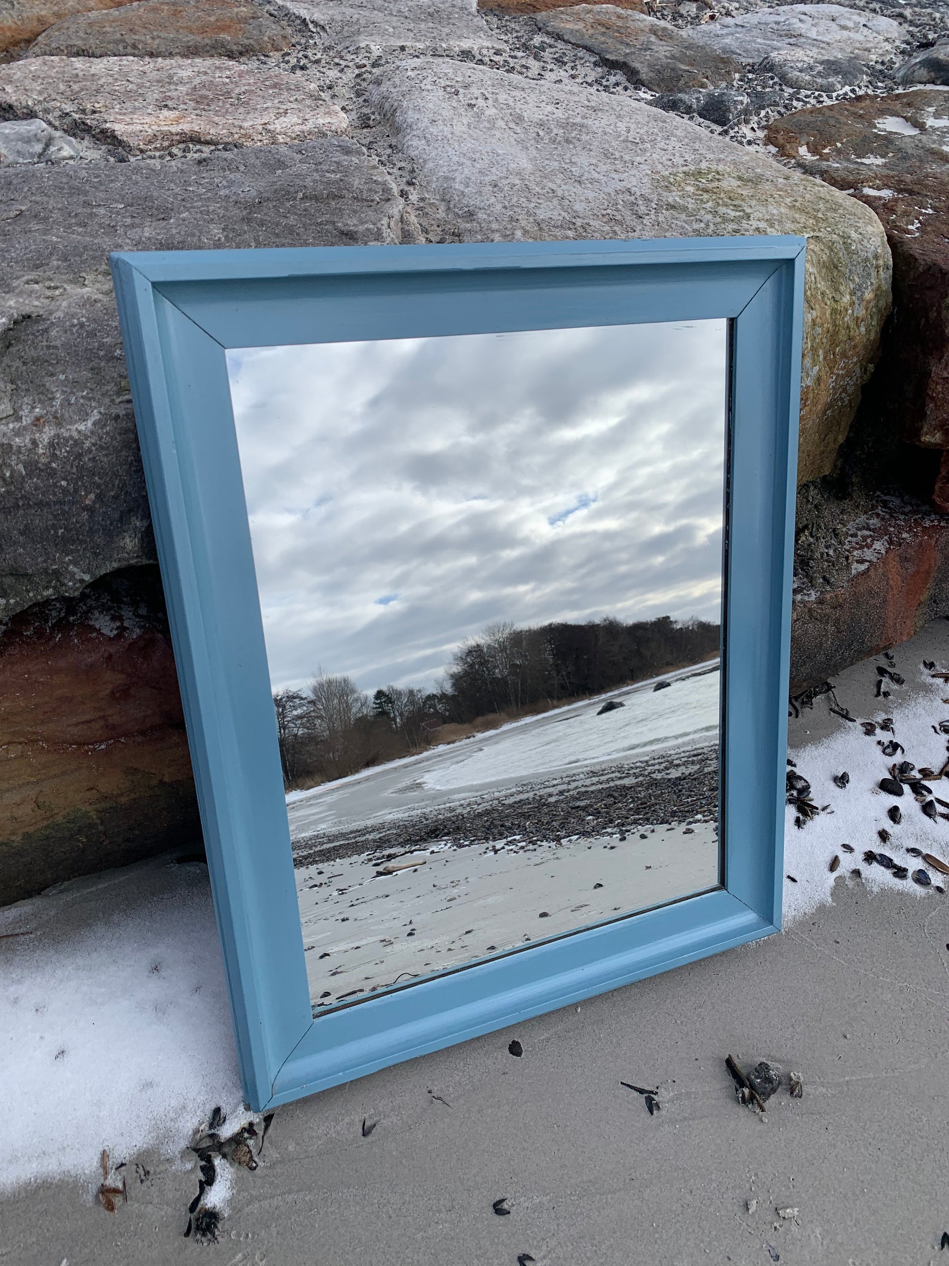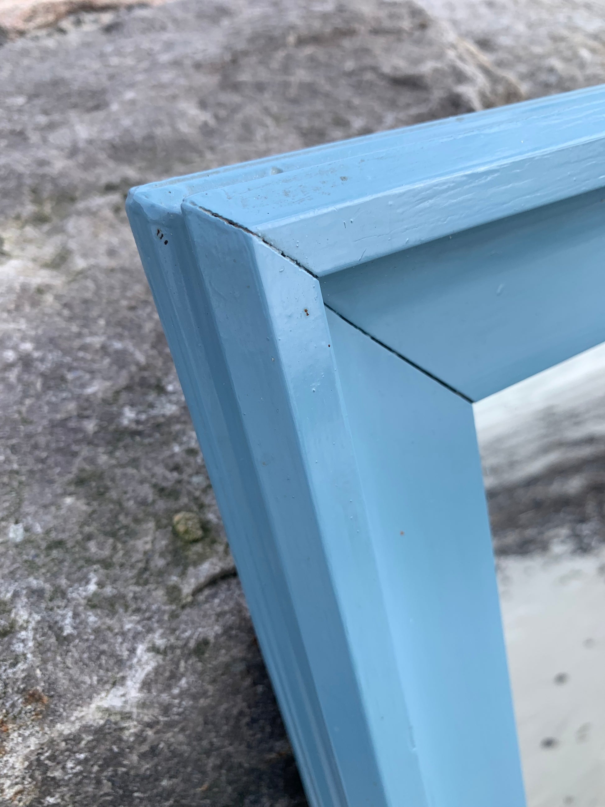 Ein hübscher, charmanter alter Spiegel mit etwas Patina und einer schönen blauen Farbe.