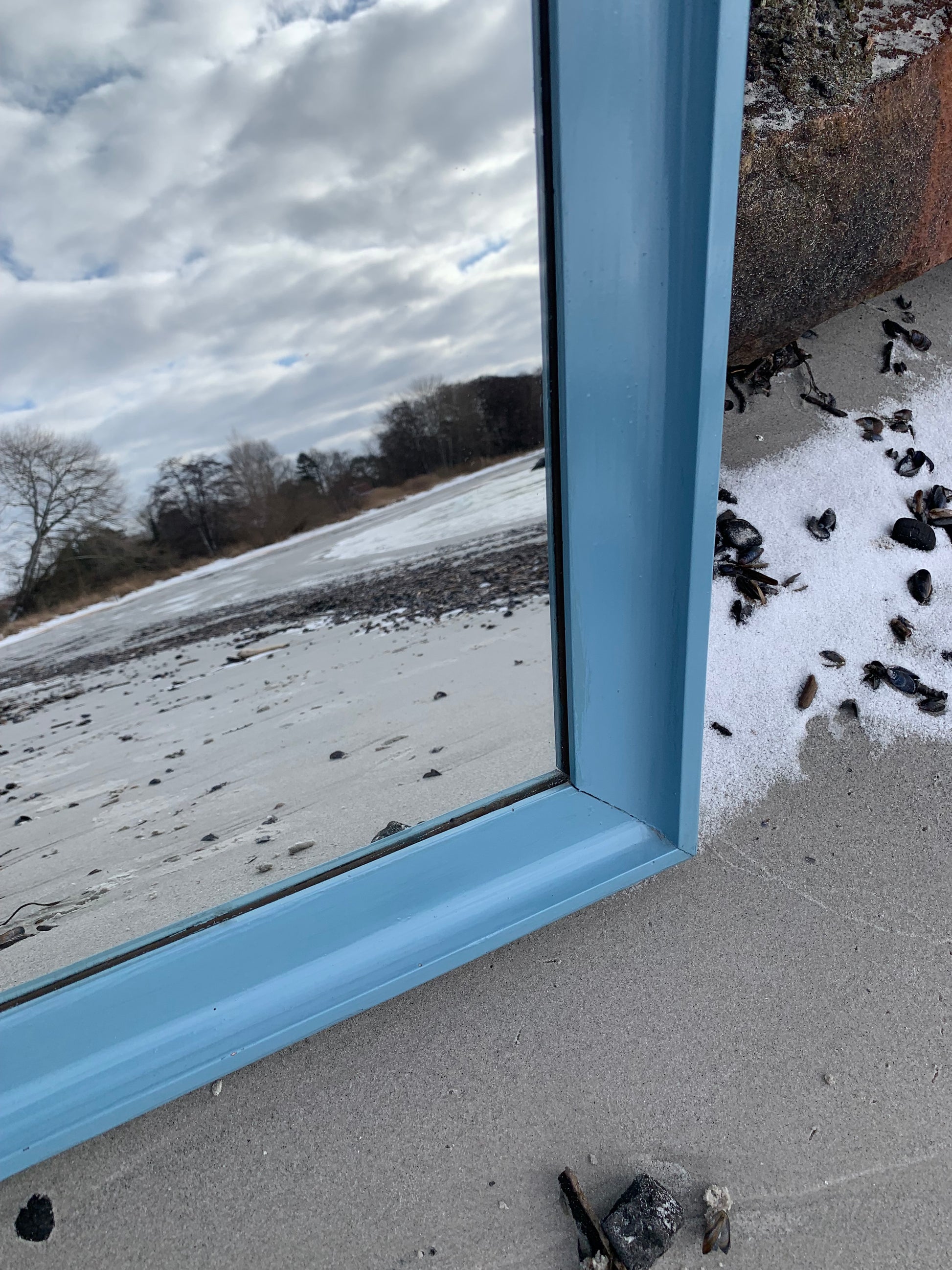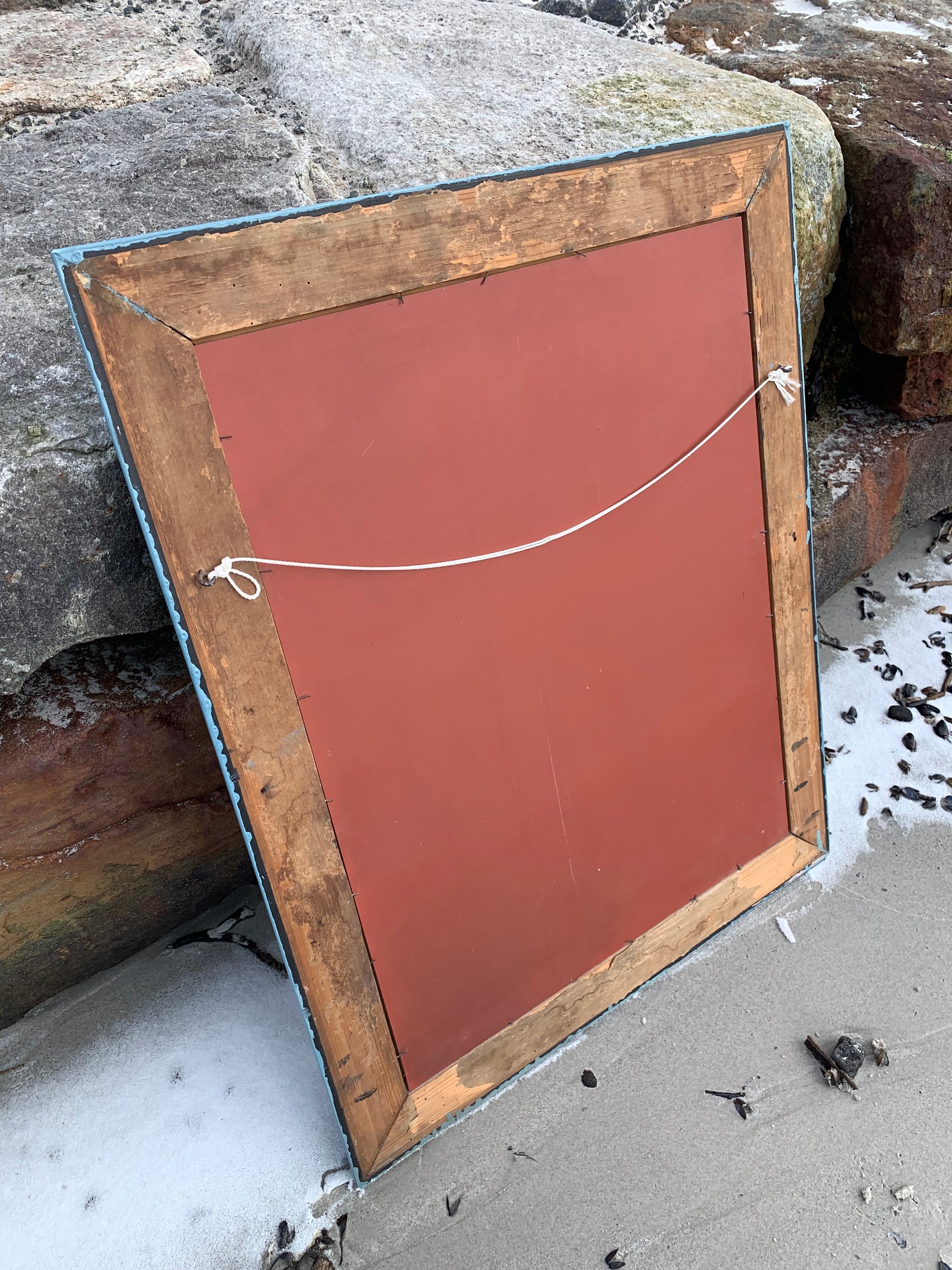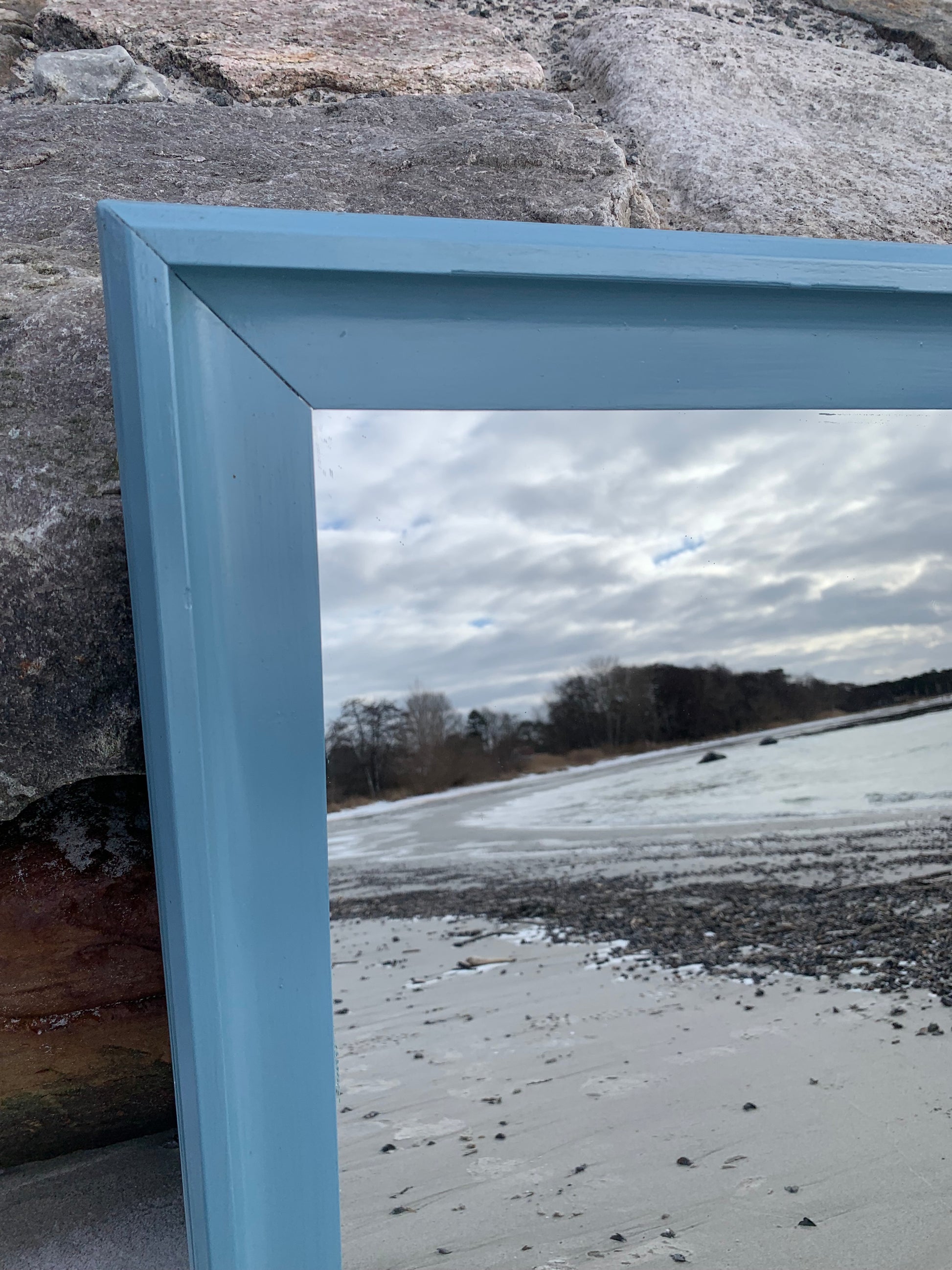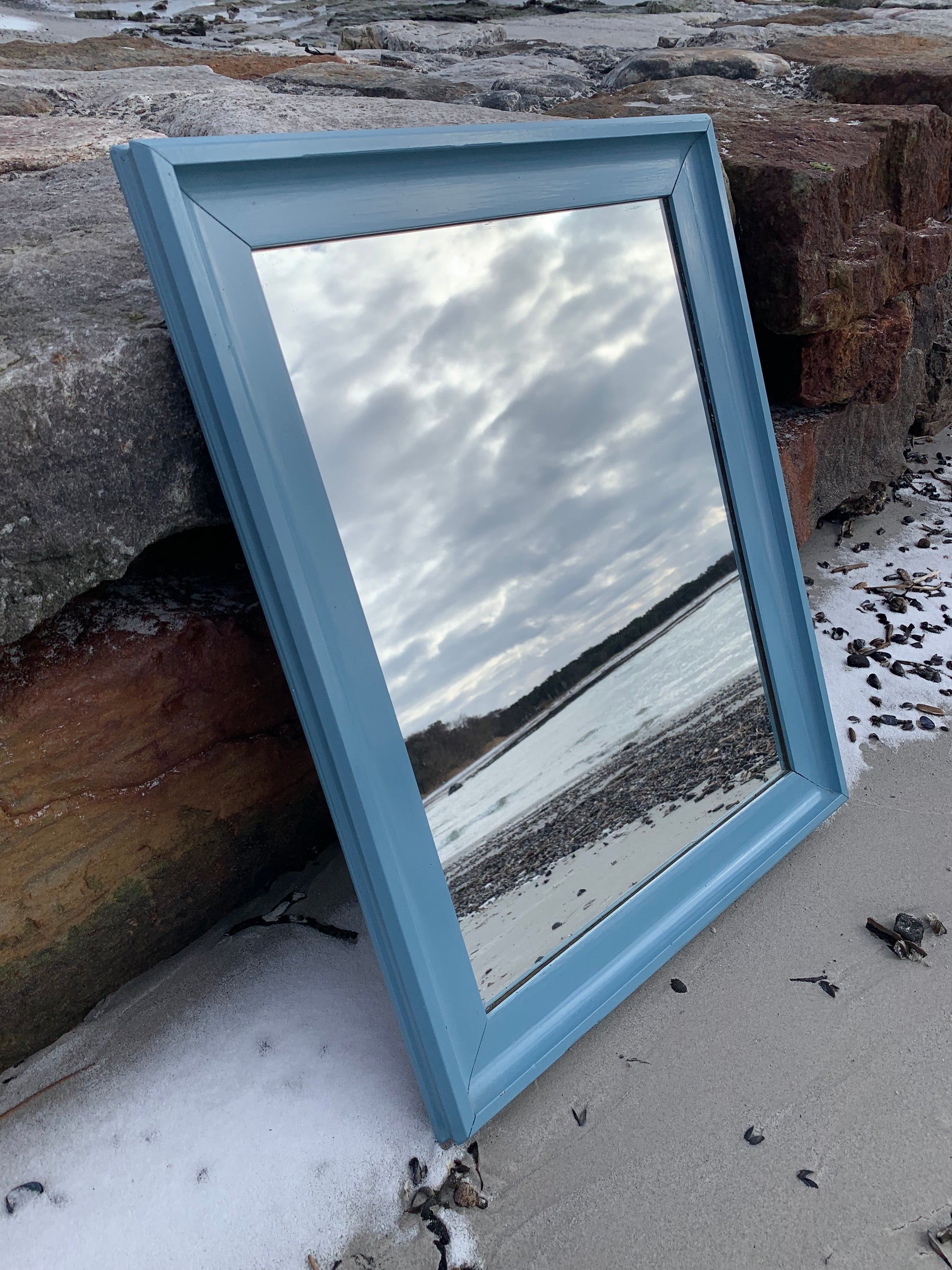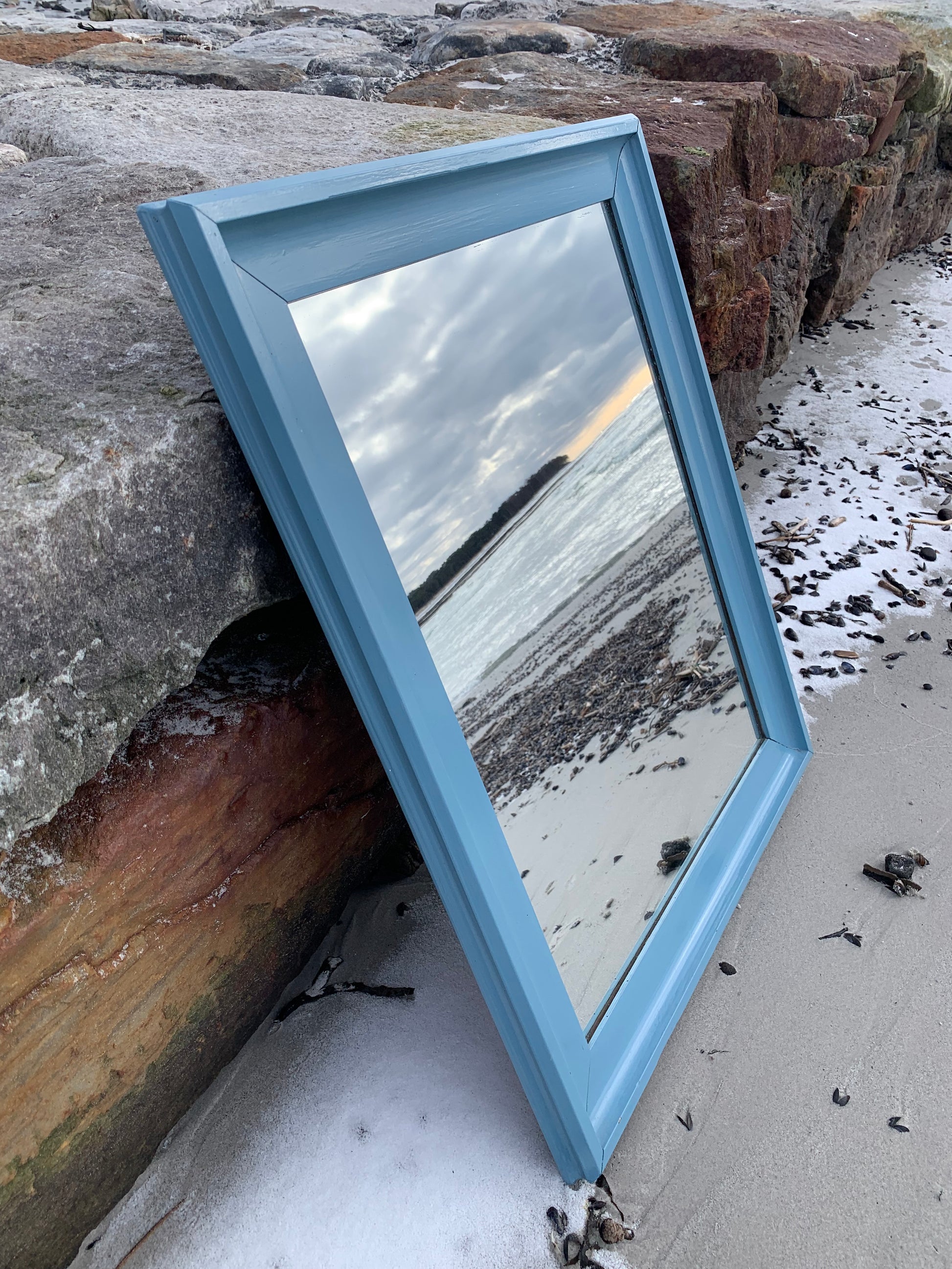 Ein hübscher, charmanter alter Spiegel mit etwas Patina und einer schönen blauen Farbe.