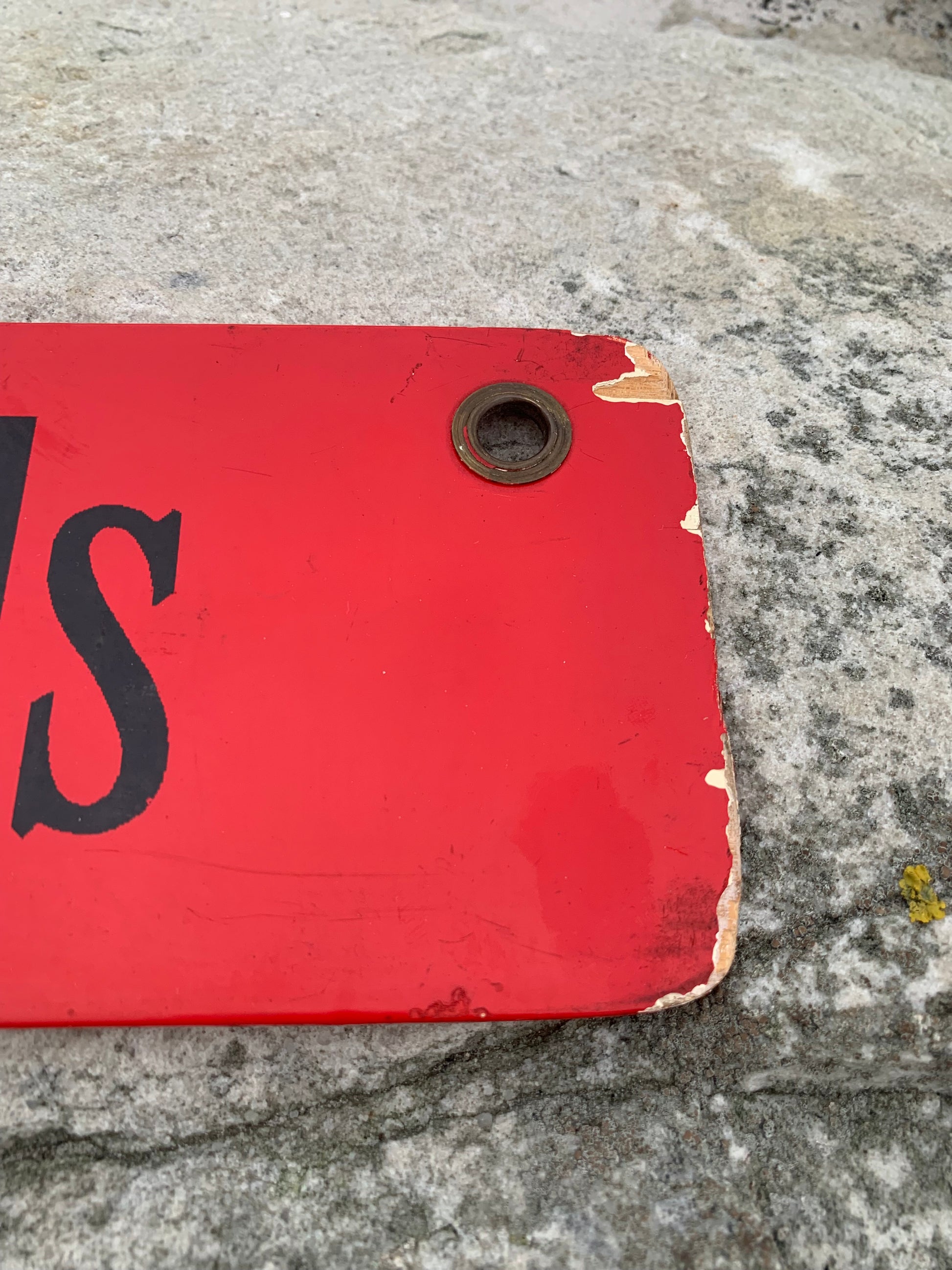 Straßenbahnschild aus lackiertem Holz mit beidseitigem Text. Das Schild stammt vermutlich aus den 1940er/50er Jahren. Es hat viel Seele, Geschichte und Patina und richtet sich an diejenigen unter euch, die das Perfekte im Unperfekten sehen.