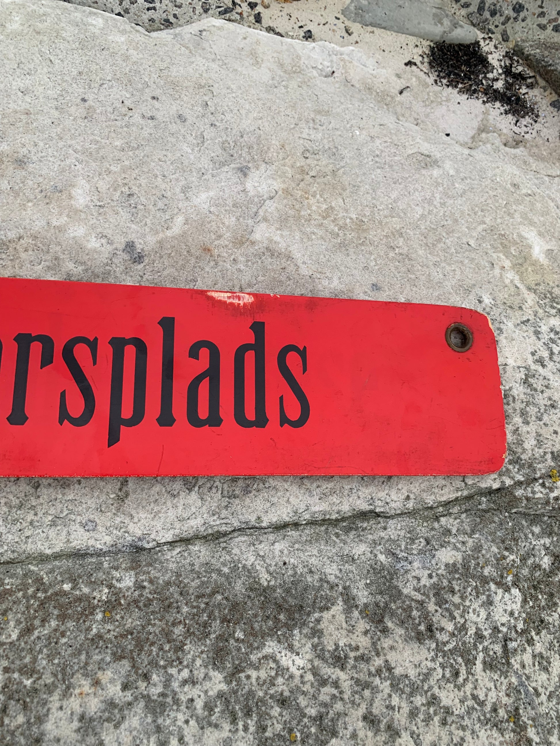 Geschichte: Das Schild stammt aus der Zeit, als in den Straßen Kopenhagens noch Straßenbahnen fuhren.