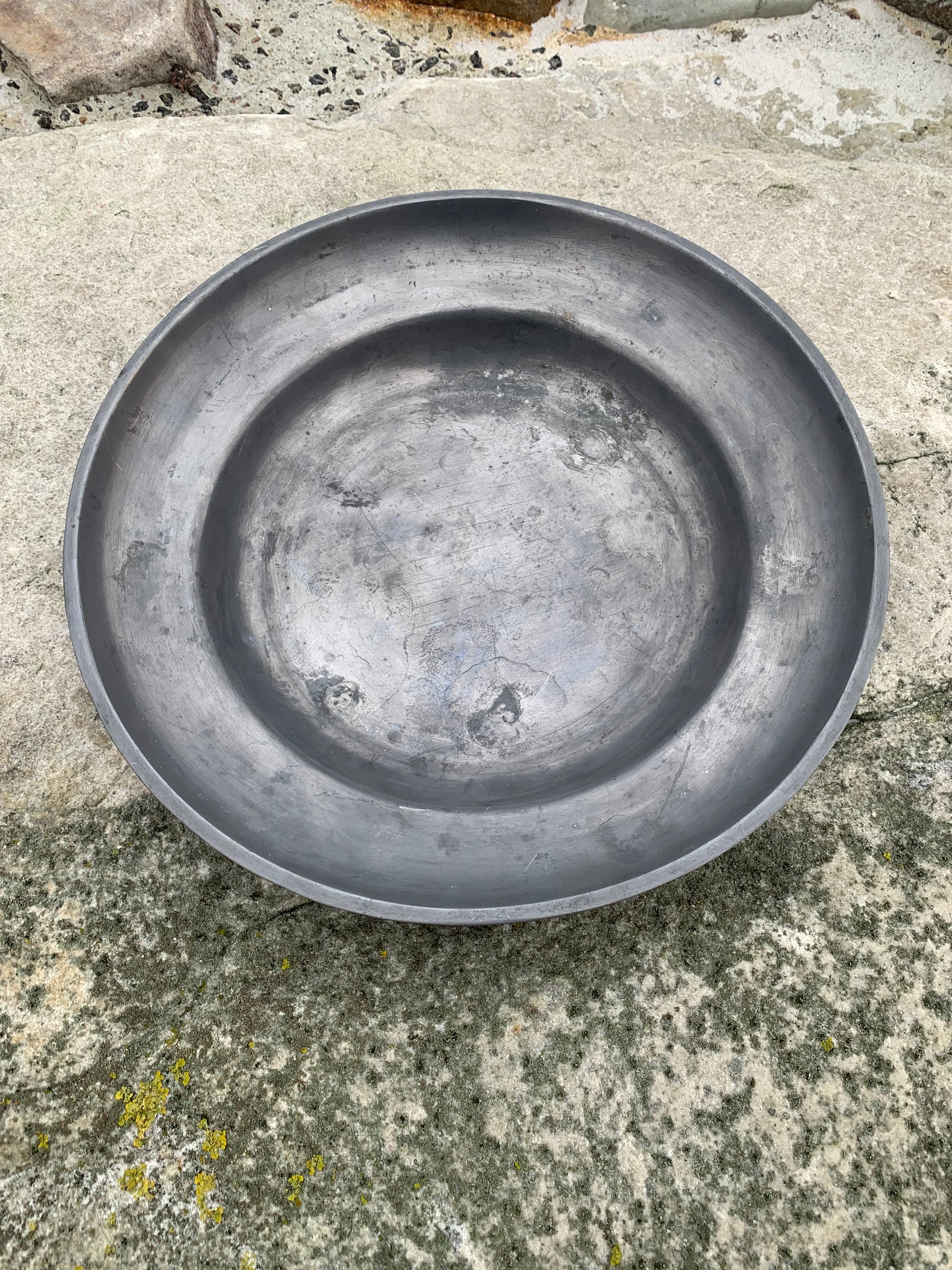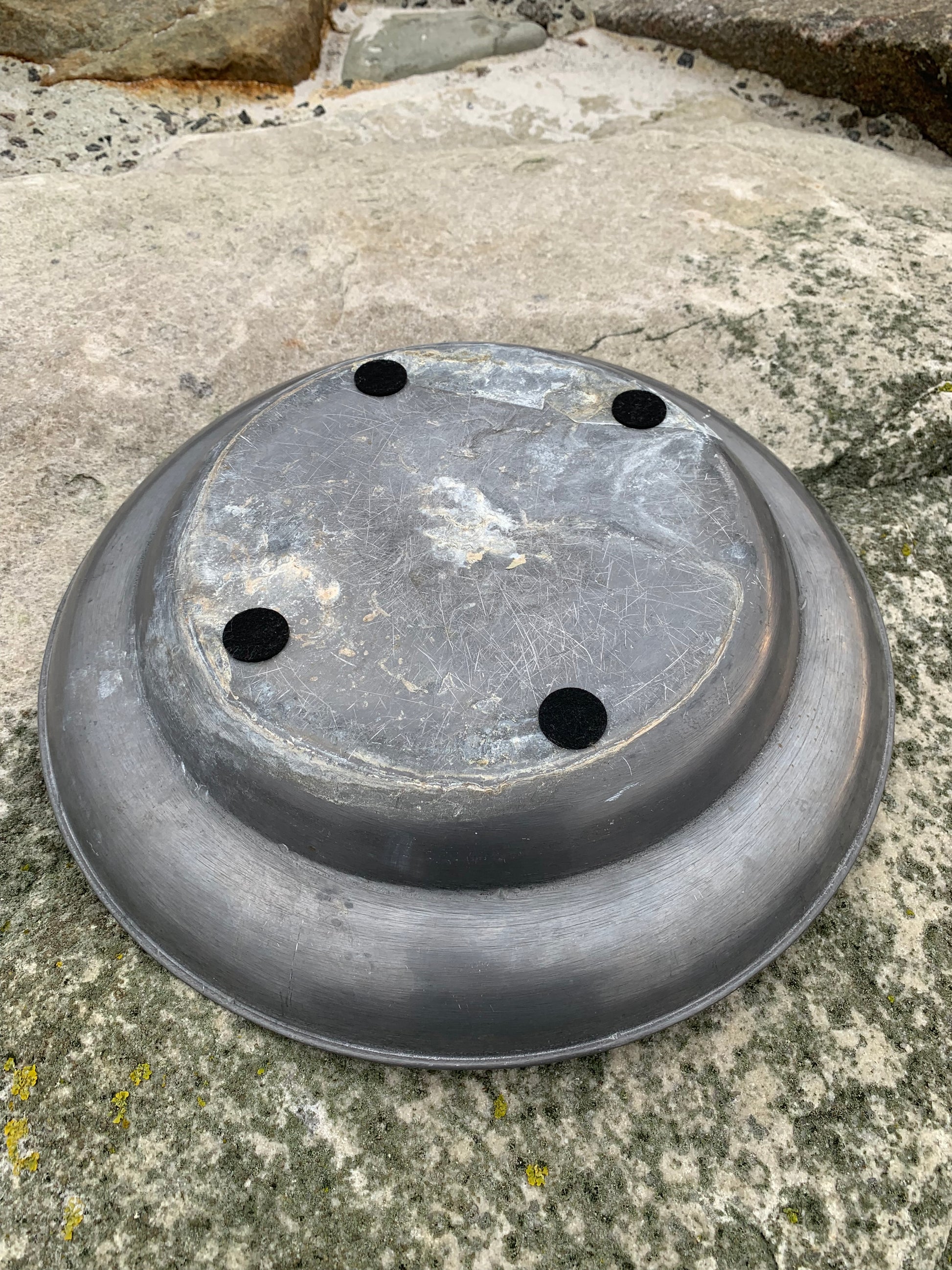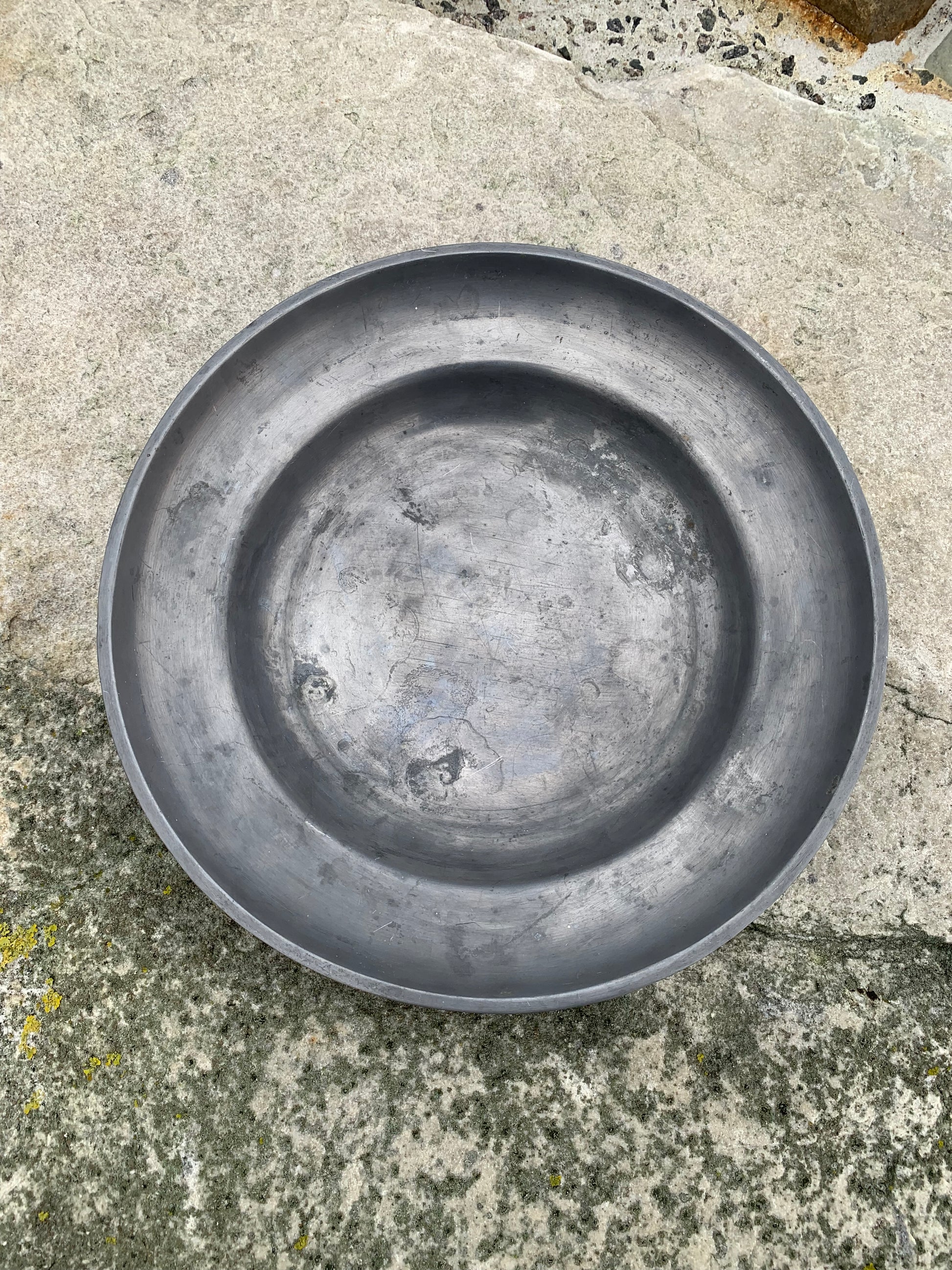 Wunderschöne alte Zinnschale mit viel Patina – sehr dekorativ und mit einem Stempel versehen.
