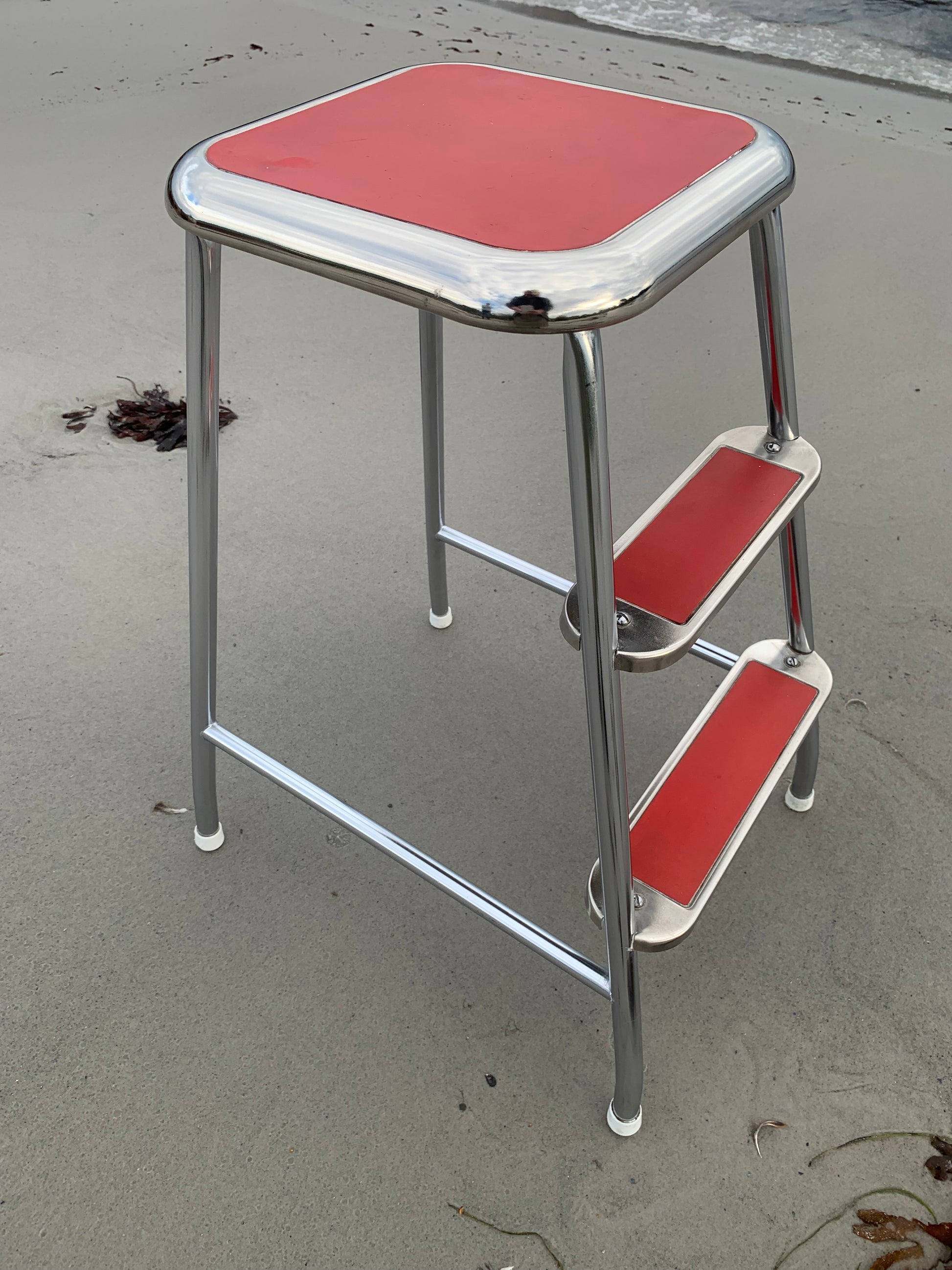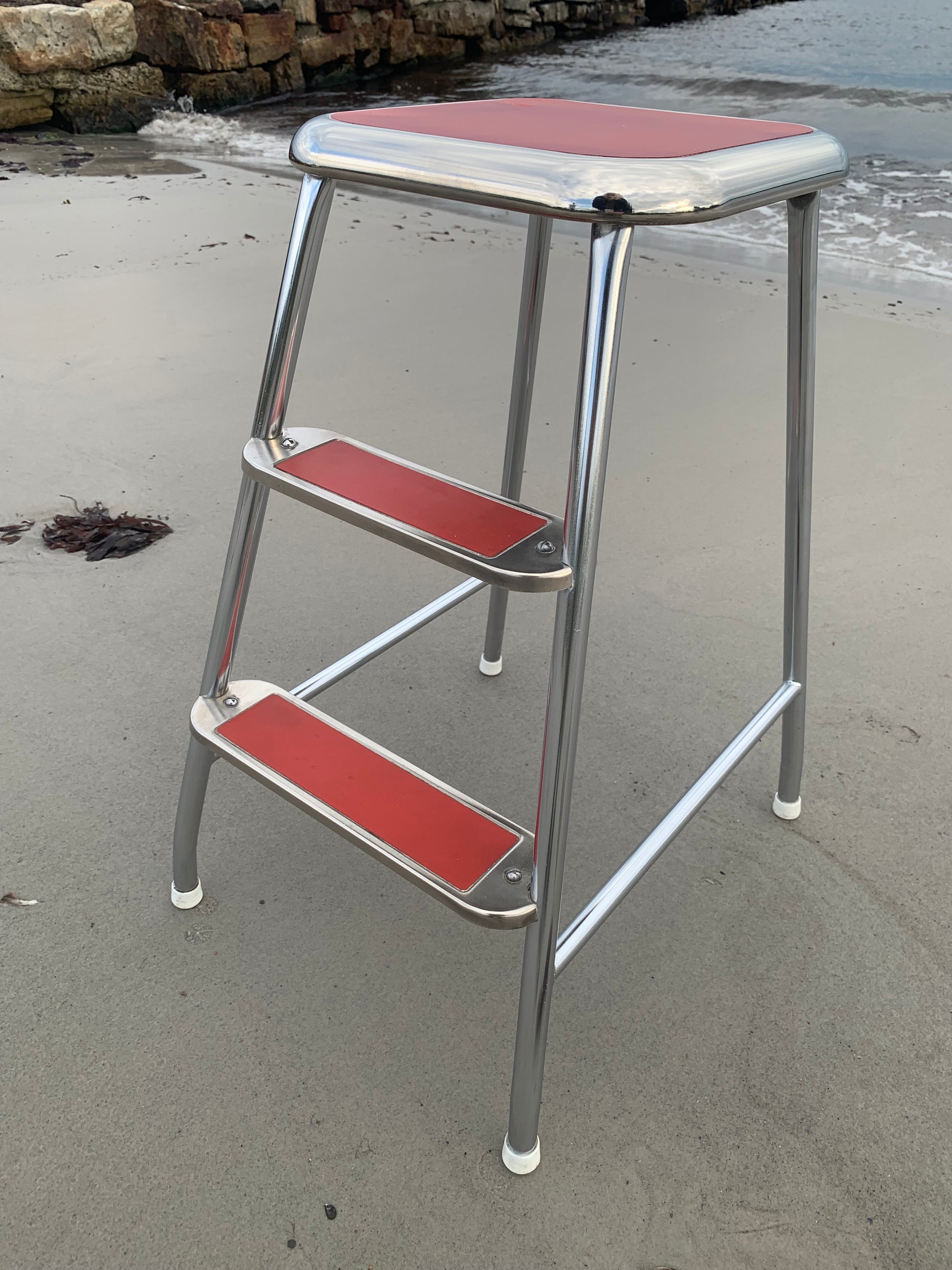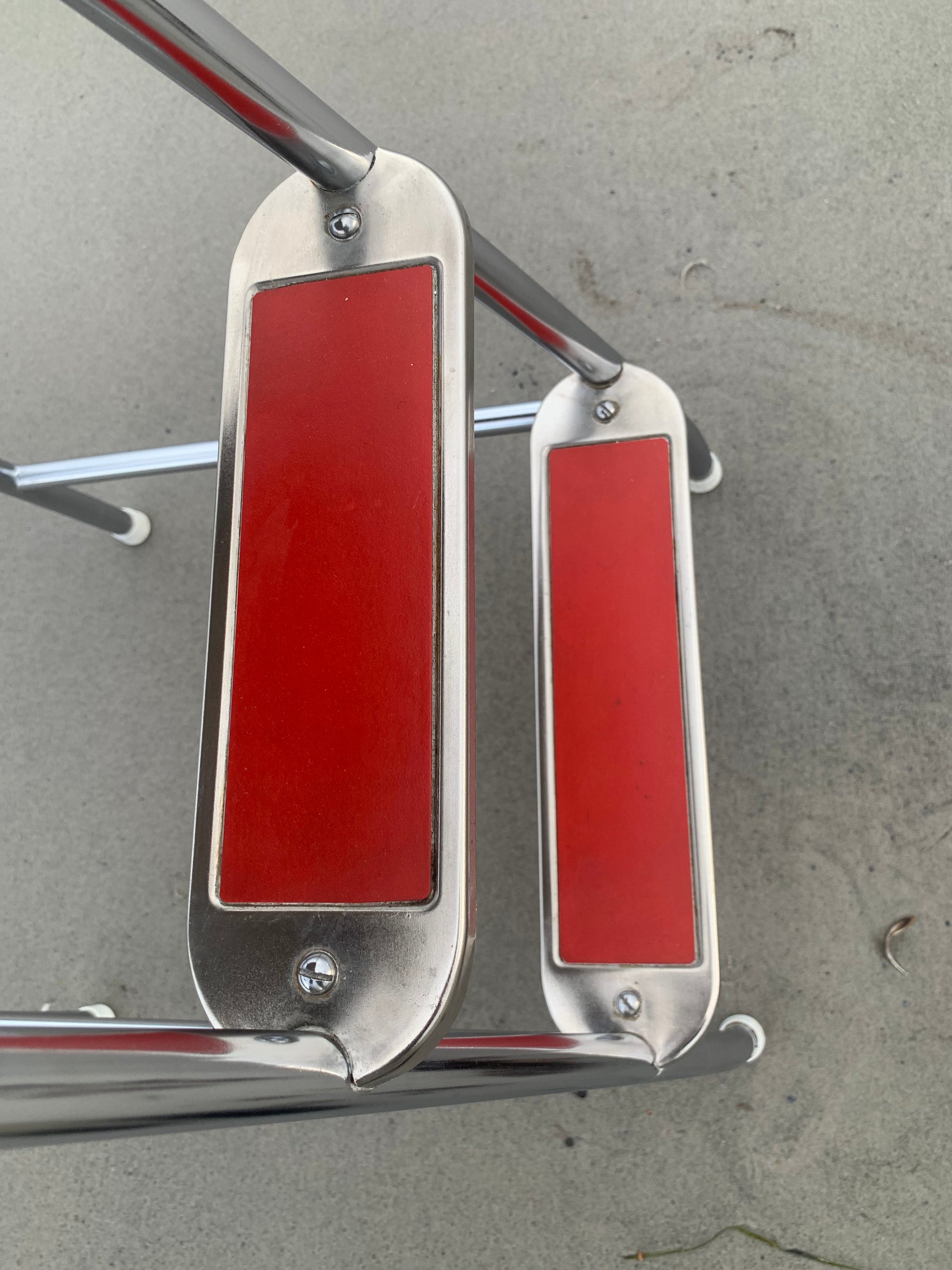 Geschichte: Es ist nicht genau bekannt, wer der Designer dieser klassischen Trittleiter von Lindqvist in Schweden ist, die in den 1950er Jahren ein großer Erfolg war. Die Trittleiter erfreute sich schnell großer Beliebtheit. Das Unternehmen achtete jedoch nicht darauf, sie durch Patent und Marke schützen zu lassen. Die Geschäftsführer Tore und Helmer Lindqvist waren wahrscheinlich sehr verärgert, als ein anderes schwedisches Unternehmen, AWAB (Anderstorps Werkstad AB), die Trittleiter mit einem Modell kopierte, bei dem der Unterschied kaum zu erkennen ist. Beide Modelle wurden in den 1950er Jahren „Husmorsstegen“ (Hausfrauenleiter) genannt. Der Unterschied ist nur dann wirklich sichtbar, wenn man die Unterseite der Hocker umdreht, denn hier gibt es einen Unterschied bei der Montage und den Schweißnähten. Auch bei den für die Stufen verwendeten Schrauben gibt es einen Unterschied. Bei Lindqvist sind es runde Schrauben und bei AWAB sind es flache.