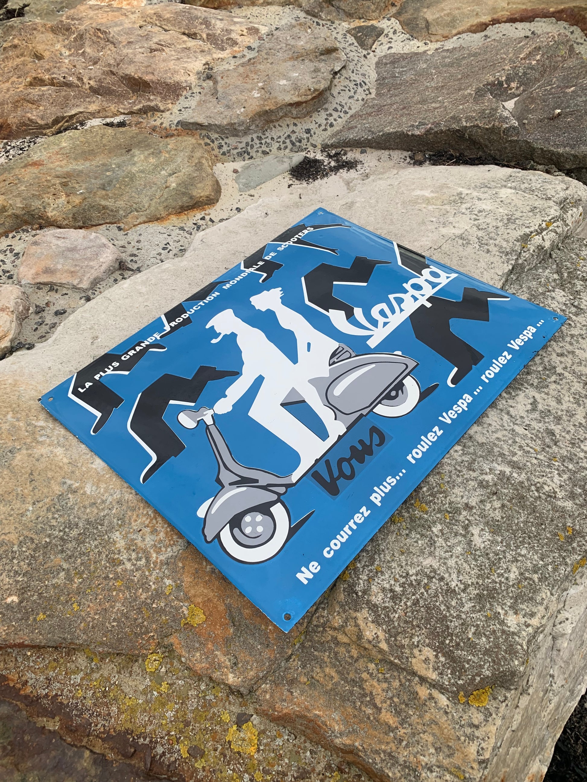 Vespa Emailleschild (gewölbt) Das Schild ist in gebrauchtem aber gutem Zustand.
